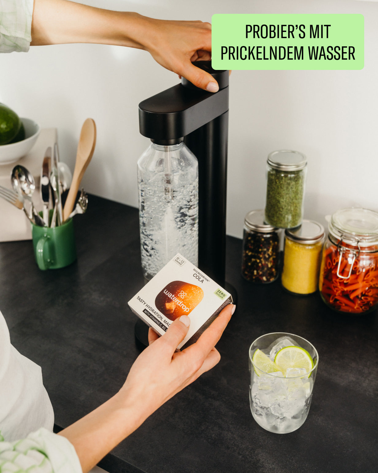 Mische sie ganz nach deinen Vorlieben und spiele mit der Wassermenge, bis du die perfekte Mischung aus Sprudel und Glanz für dich gefunden hast.